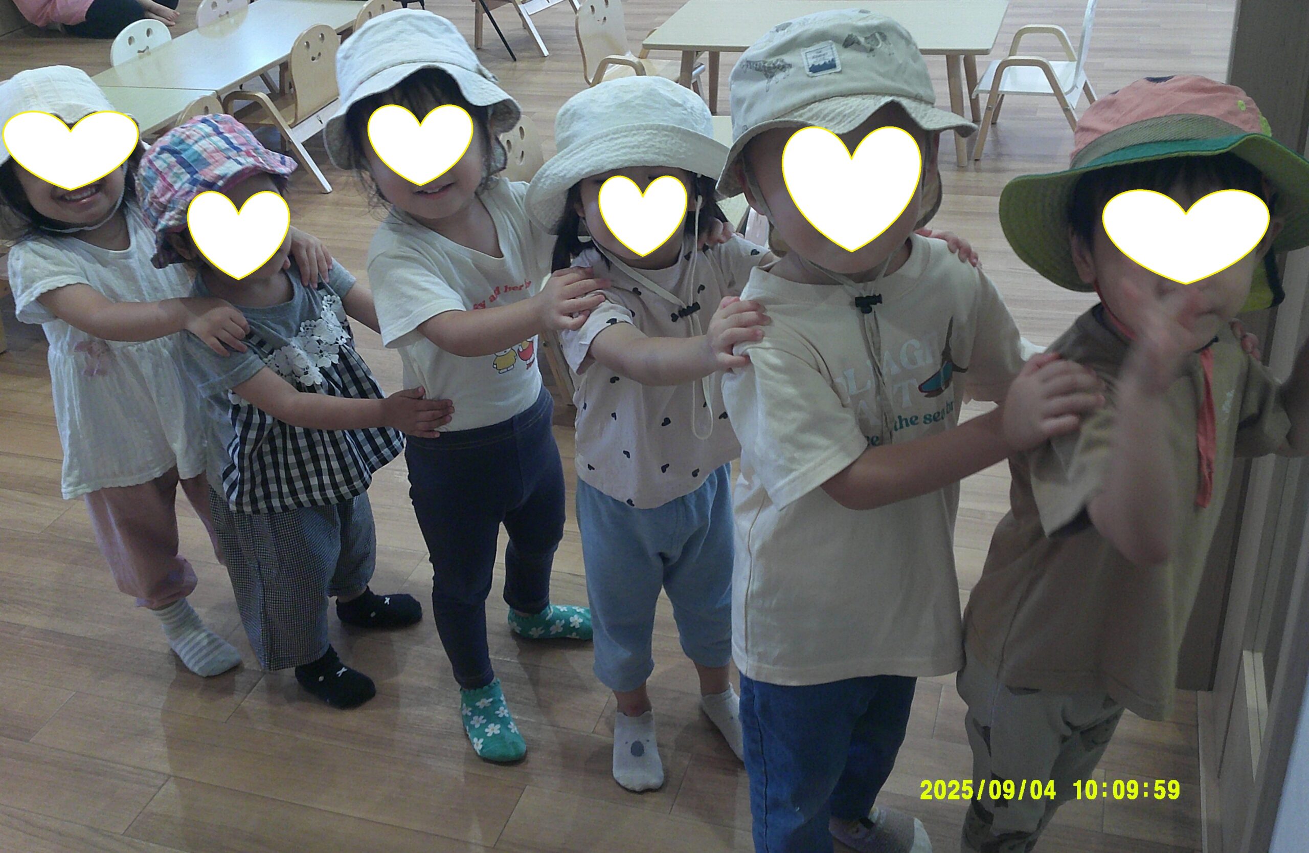 お子様達が大好きな散歩前、散歩の準備をして2歳児クラスは電車ごっこになって仲良く玄関に向かう姿はとても微笑ましいです😊弾ける笑顔が太陽に負けないくらい眩しいです🌞