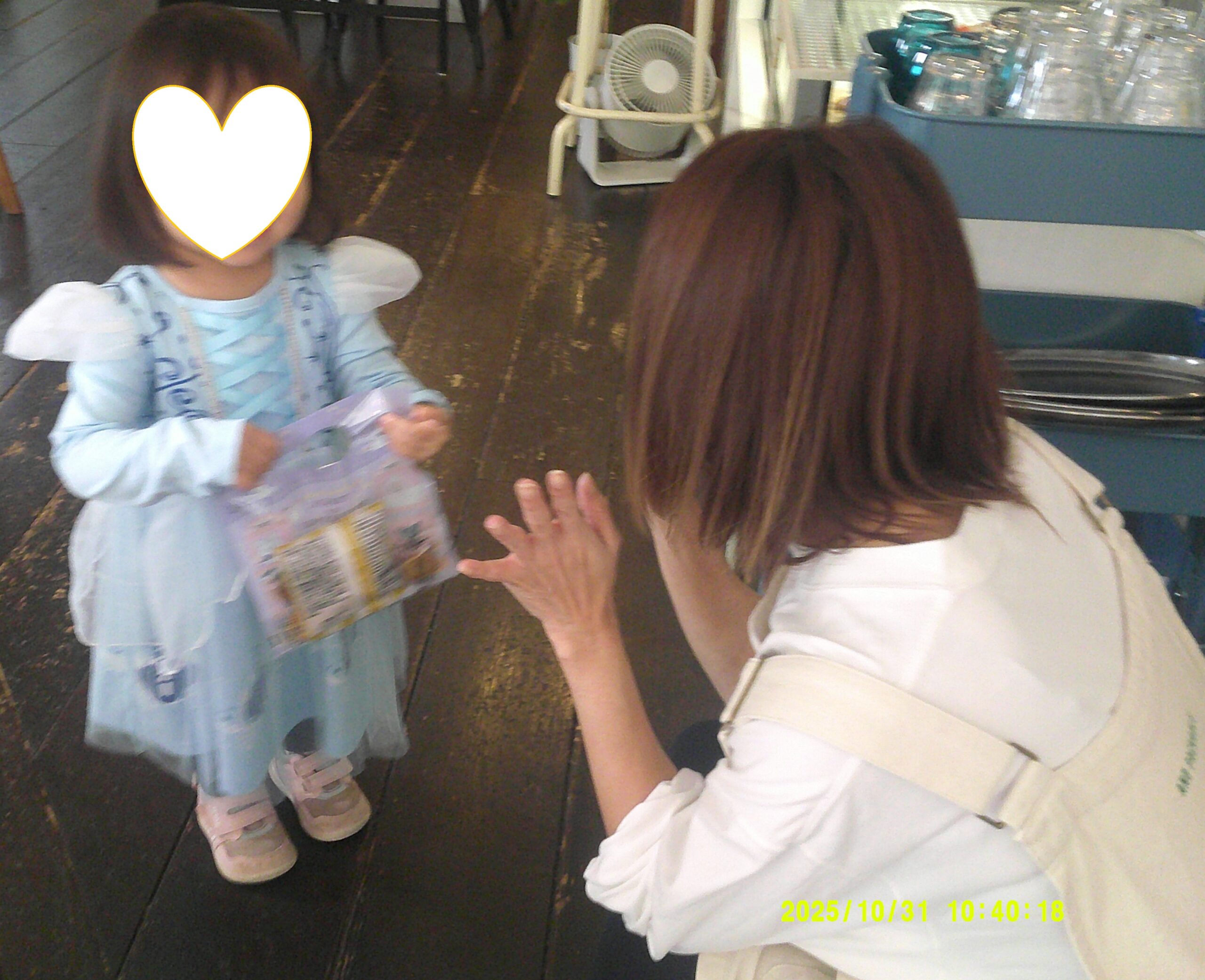 も言えて、2歳児さんは元気に自分の名前やお菓子を頂くと「ありがとう」