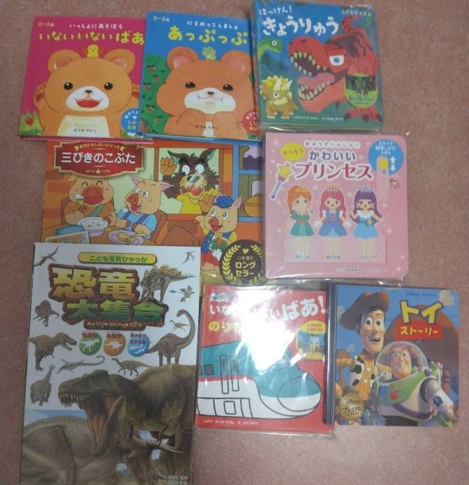 皆が大好きな怪獣や0歳児クラスのお子様達も楽しめる仕掛け絵本、女の子達が好きなプリンス系の絵本、食事や活動の切り替え時に皆で楽しめる紙芝居をセレクトしました✨✨