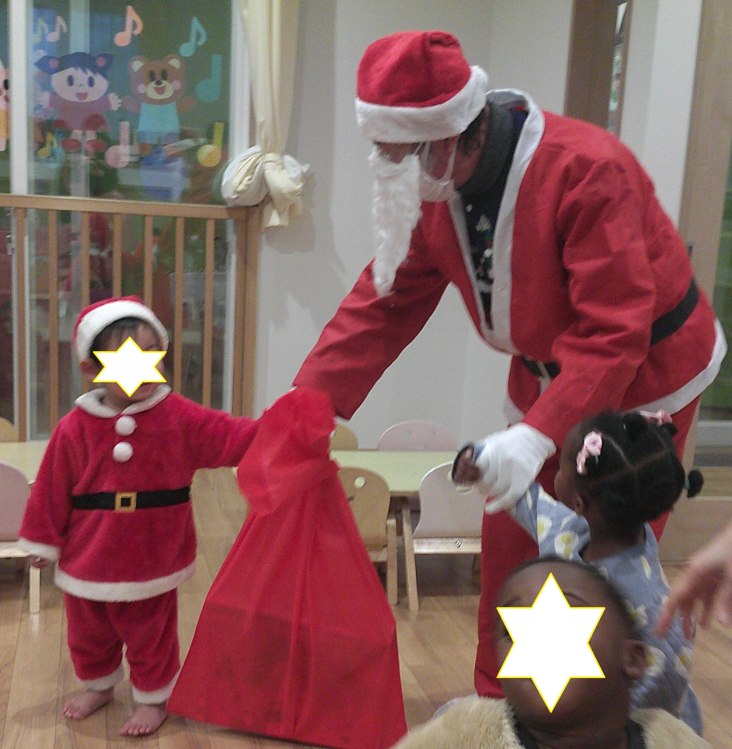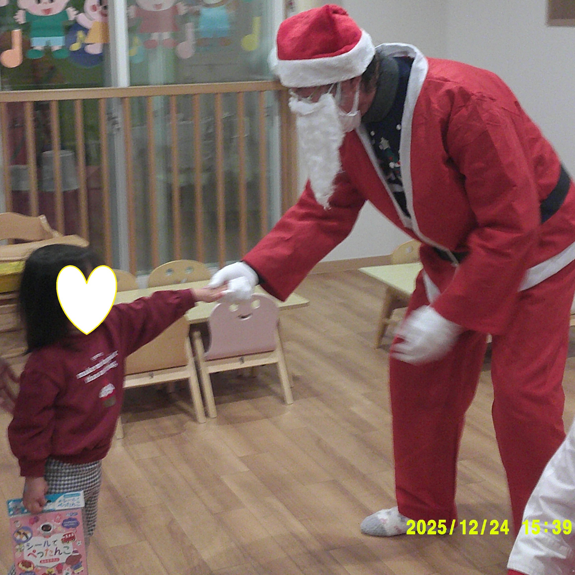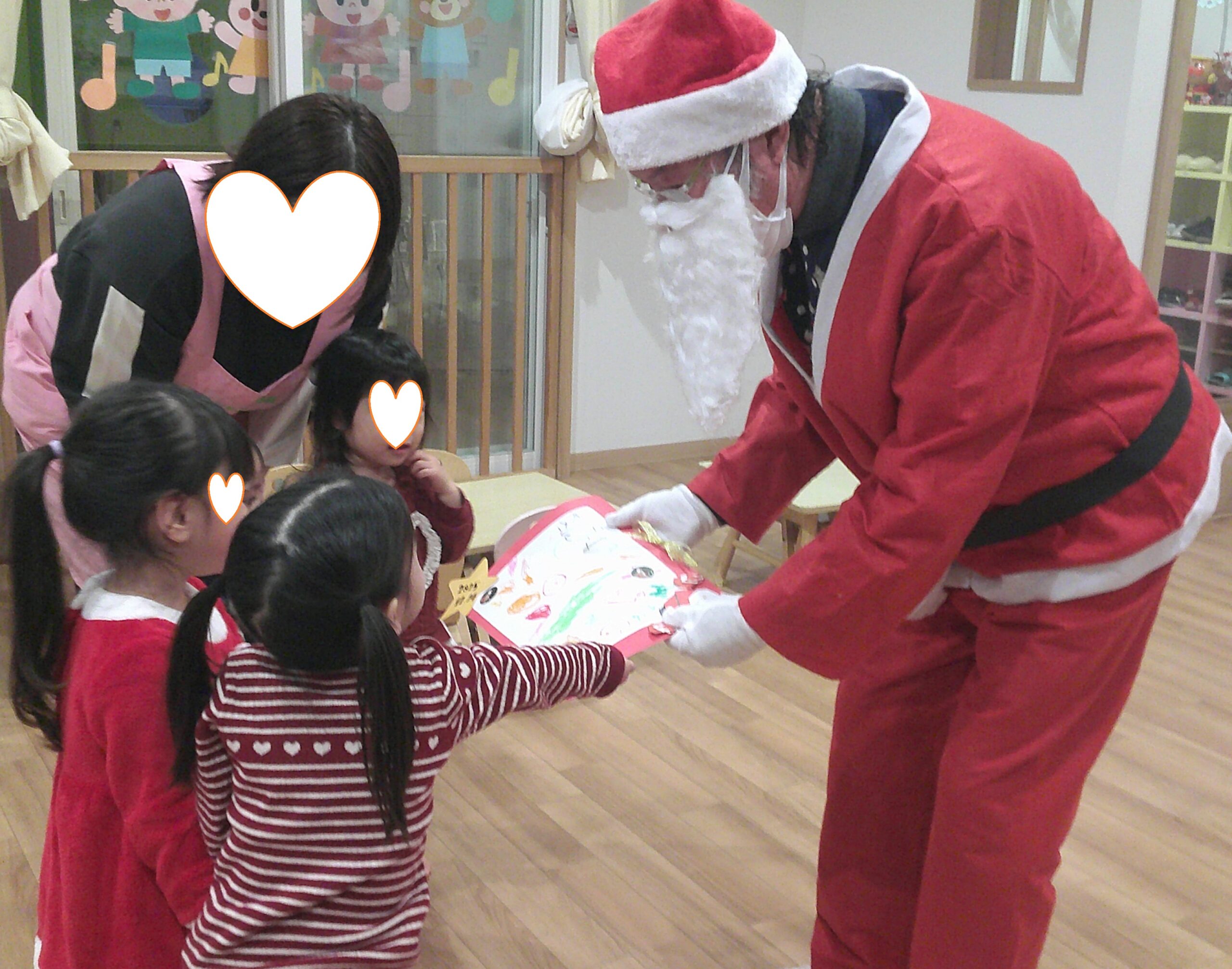2歳児クラスの女の子達からサンタクロースさんへお礼の手紙を渡しました💛