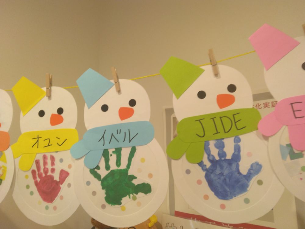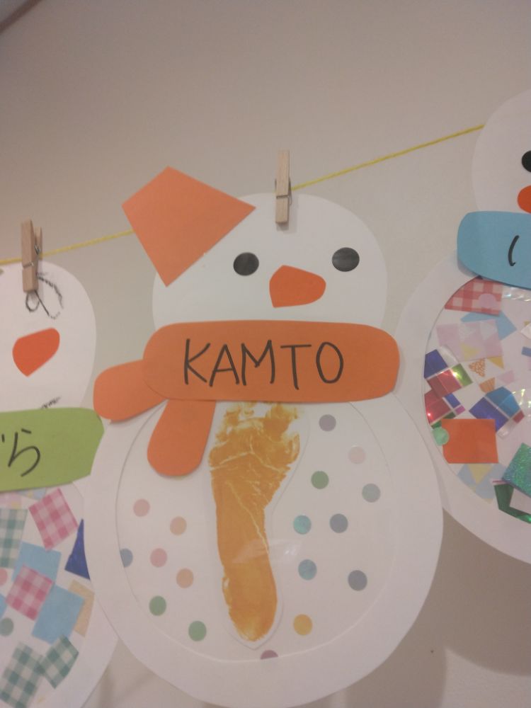 1月製作の雪だるまさん⛄0歳児さんは手形と足形をとりました😊