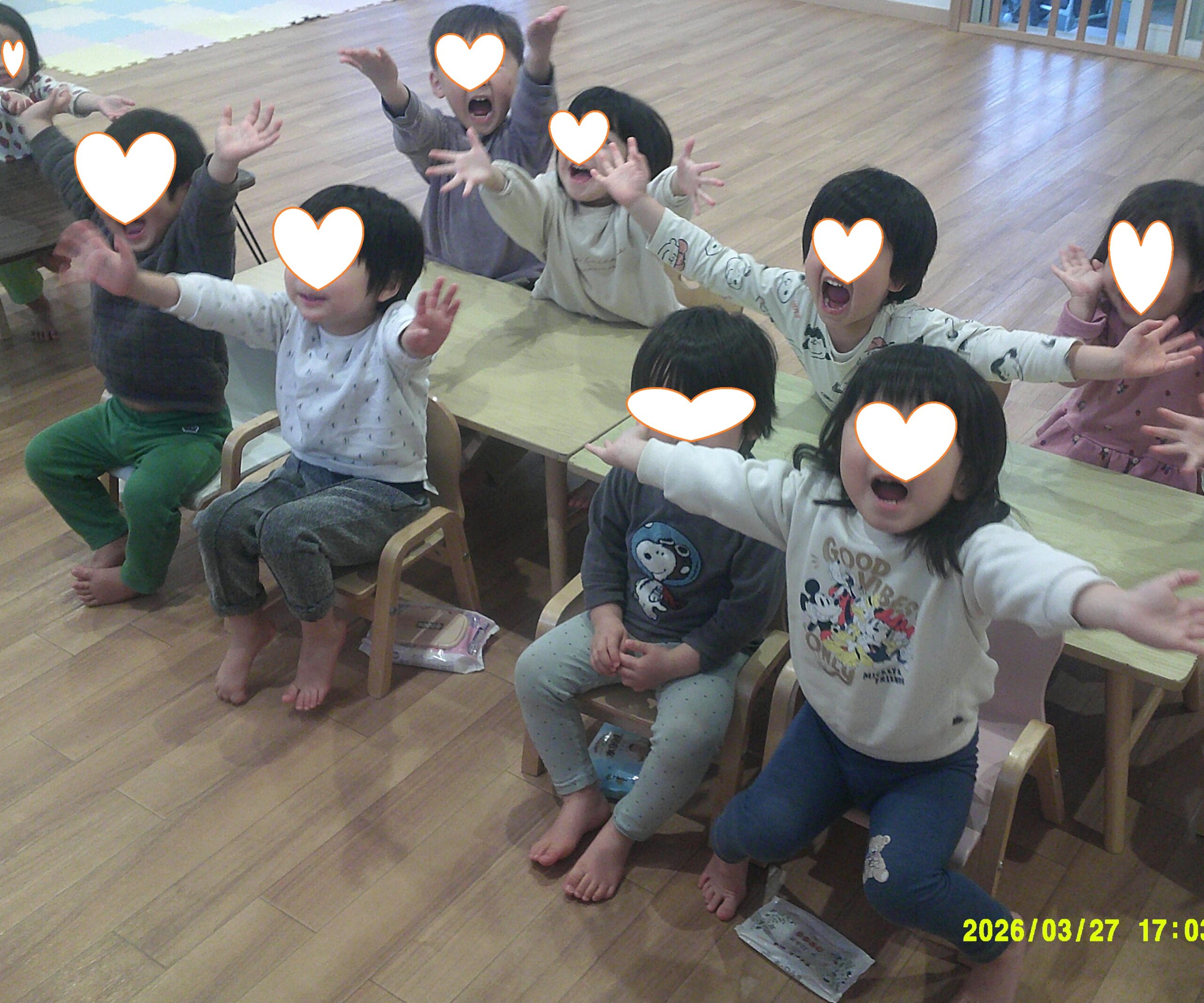 2歳児クラスでの長時間にわたる卒園式、月齢が低いお子様達にとって難易度が高いと思いますが