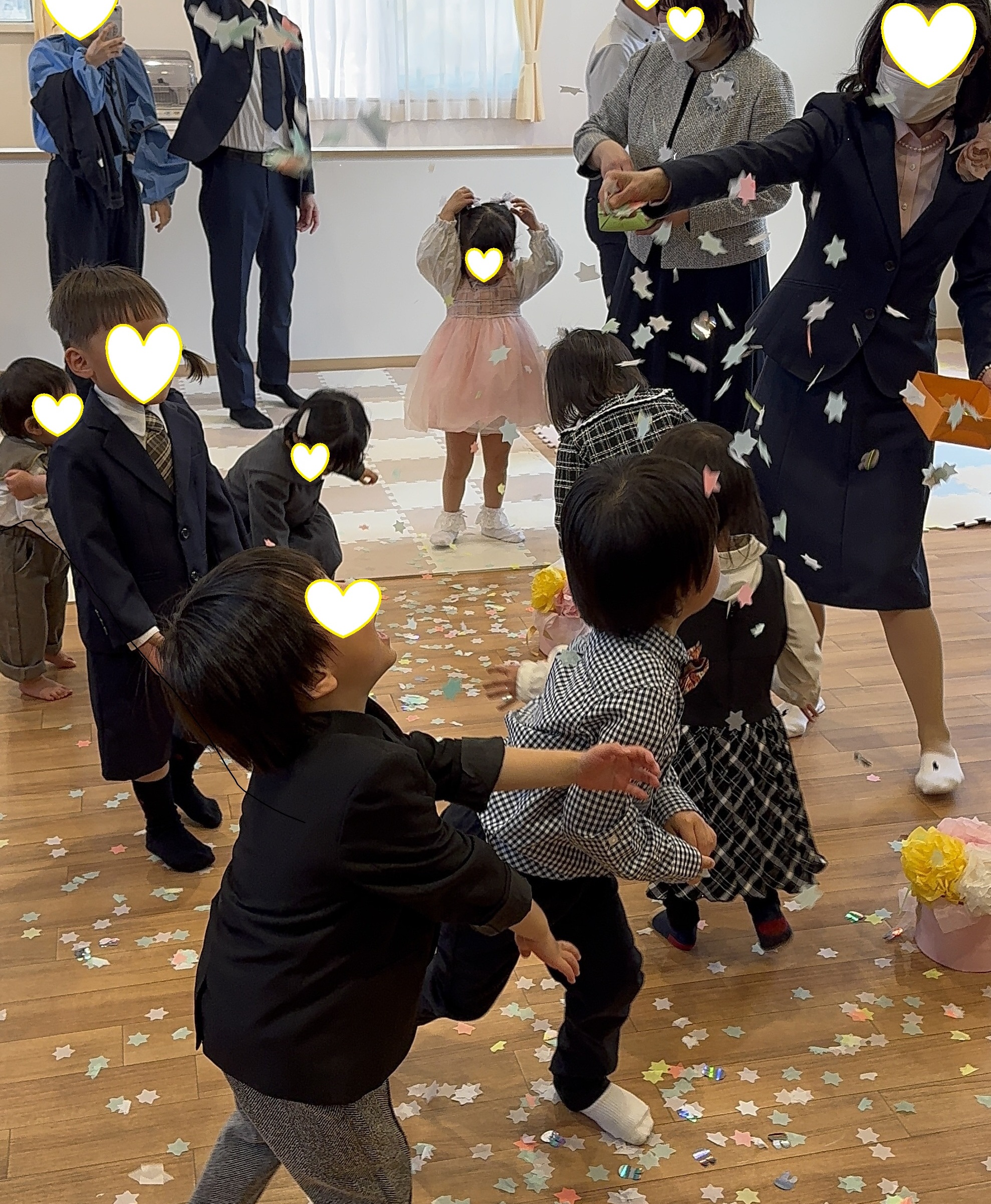 卒園式の終わりには🌸さくら吹雪で😊お子様達は大はしゃぎ🎵